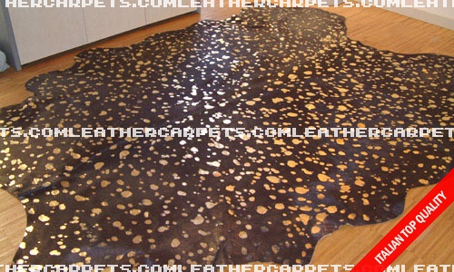 TAPPETO IN PELLE ACIDATO MARRONE/ORO