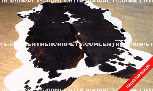 • Pelle bovina manto colore e macchie naturali bianche, marroni e nere. Lucido e Morbido. Macchia simmetrica.